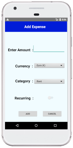 The Figures [5], [6] and [7] shows the options for adding the expenses data.