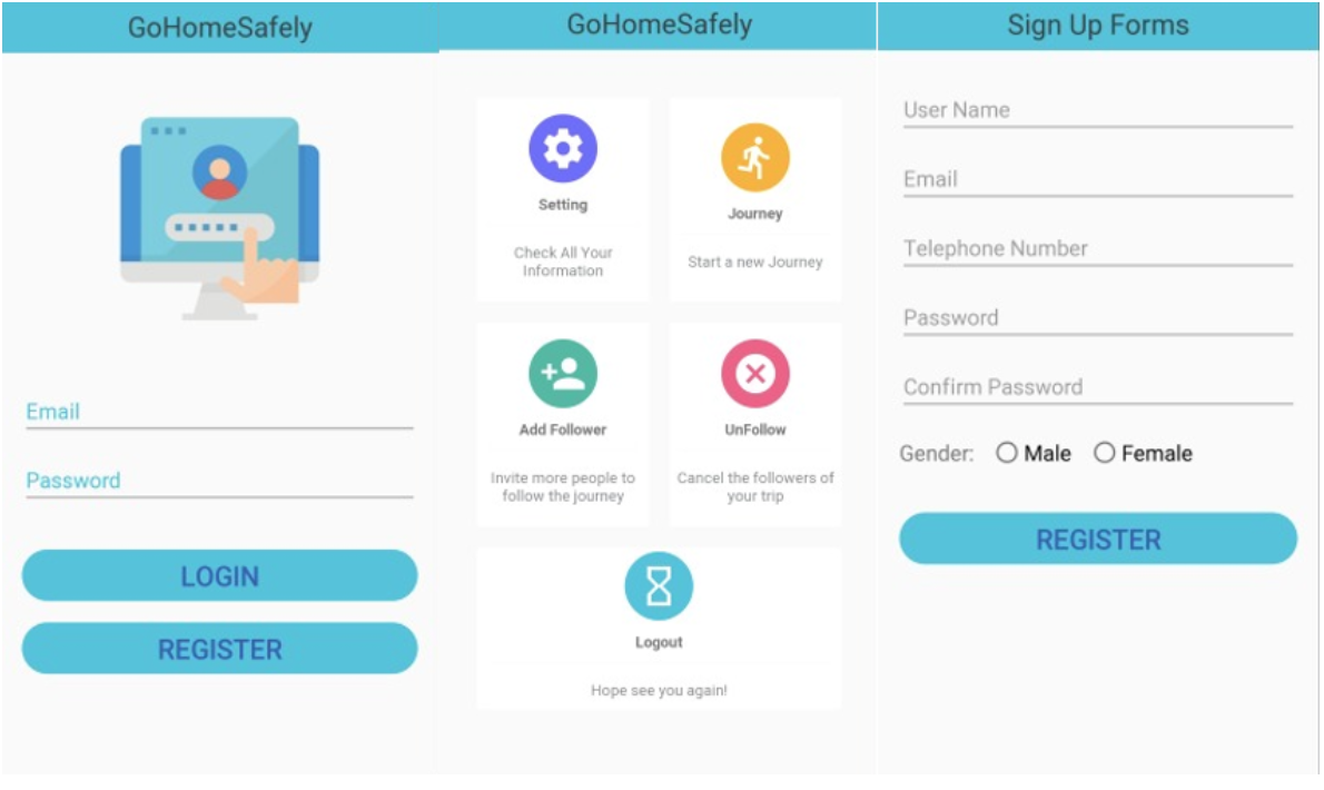 For the selection of our color palette we opted to go for a nice bright(baby) blue to be the color of our theme (our central color- color for our accents). We additionally employ a nice beige grey to give the application a beautiful and interesting look. We selected blue because It is a colour that symbolizes loyalty, strength, wisdom and trust. Blue color is also known to have a calming effect on the psyche and as with our app we want our users to feel calm and peaceful while going to their destination.